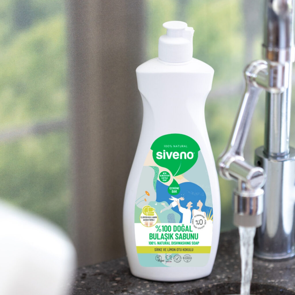 - Siveno Doğal Bulaşık Sabunu zeytinyağı, hint Yağı ve hindistan cevizi yağlarını içerir.
