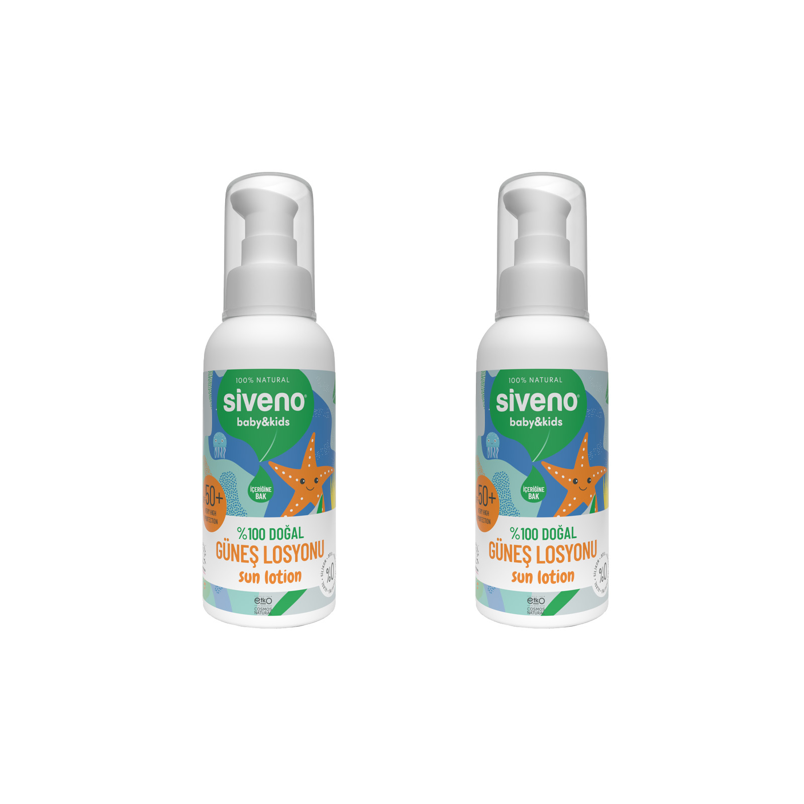 Siveno %100 Doğal Çocuk Güneş Losyonu Leke Karşıtı Antioksidan Nemlendirici Bitkisel Vegan UVA UVB SPF50 X2 Adet