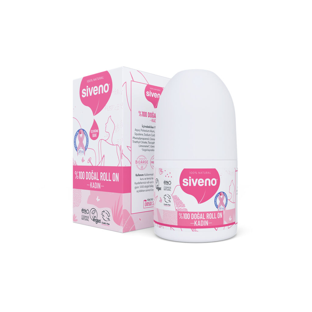 Siveno Doğal Roll-On Kadın Deodorant, 50 ml’lik taşınabilir boyutuyla her an yanınızda taşıyabileceğiniz pratik bir üründür. Hem günlük kullanım hem de seyahat için mükemmel bir çözüm sunar.