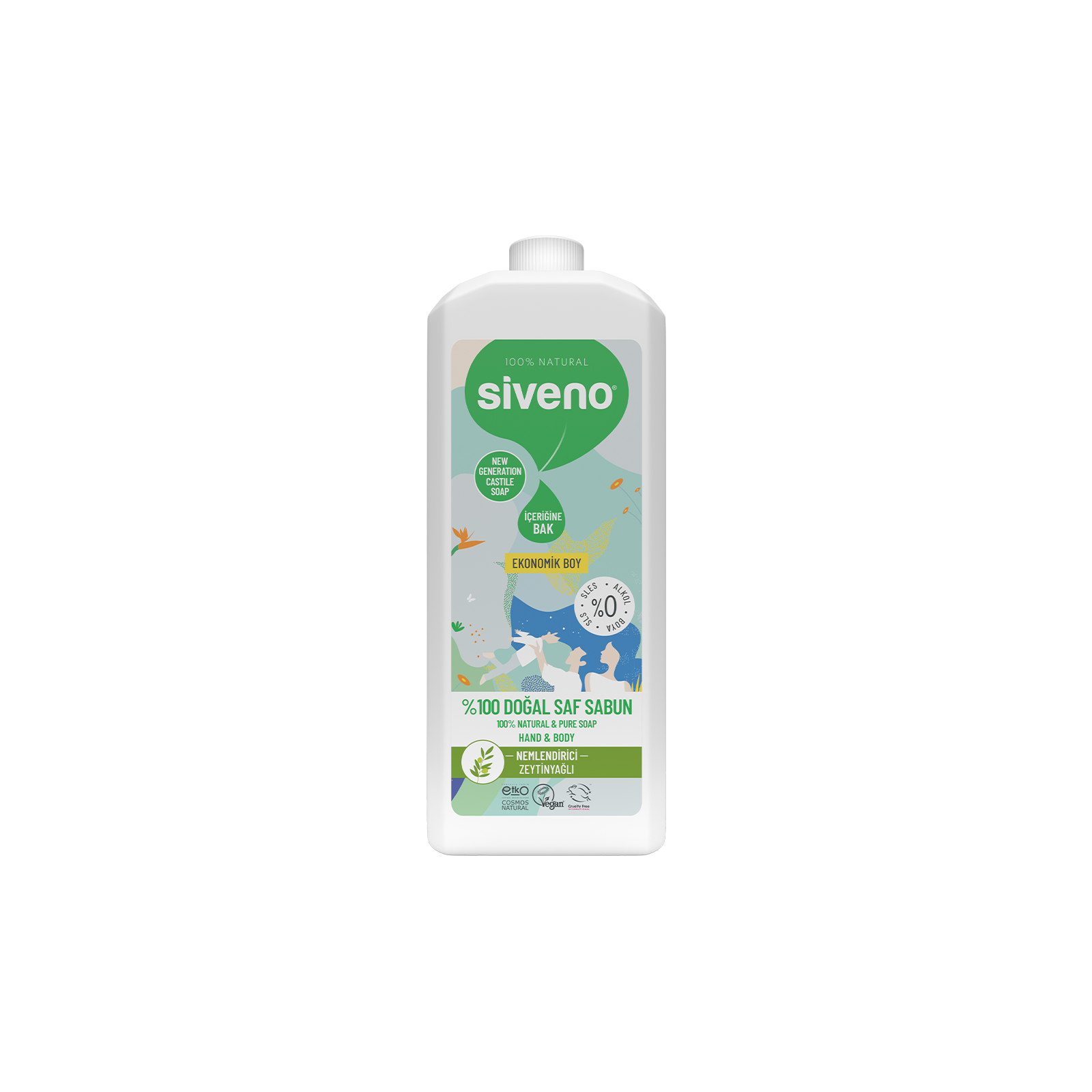 Siveno sıvı sabun, günlük hijyen ihtiyaçlarınızı karşılarken çevre dostu yapısıyla da dikkat çeker. Doğal sıvı sabun vegan sertifikasına sahip ve geri dönüşümlü ambalaj kullanımıyla doğa dostudur. Doğal sabun, zeytinyağının canlandırıcı etkisiyle temizlik rutininize enerji katarken cildinizi tazeler.