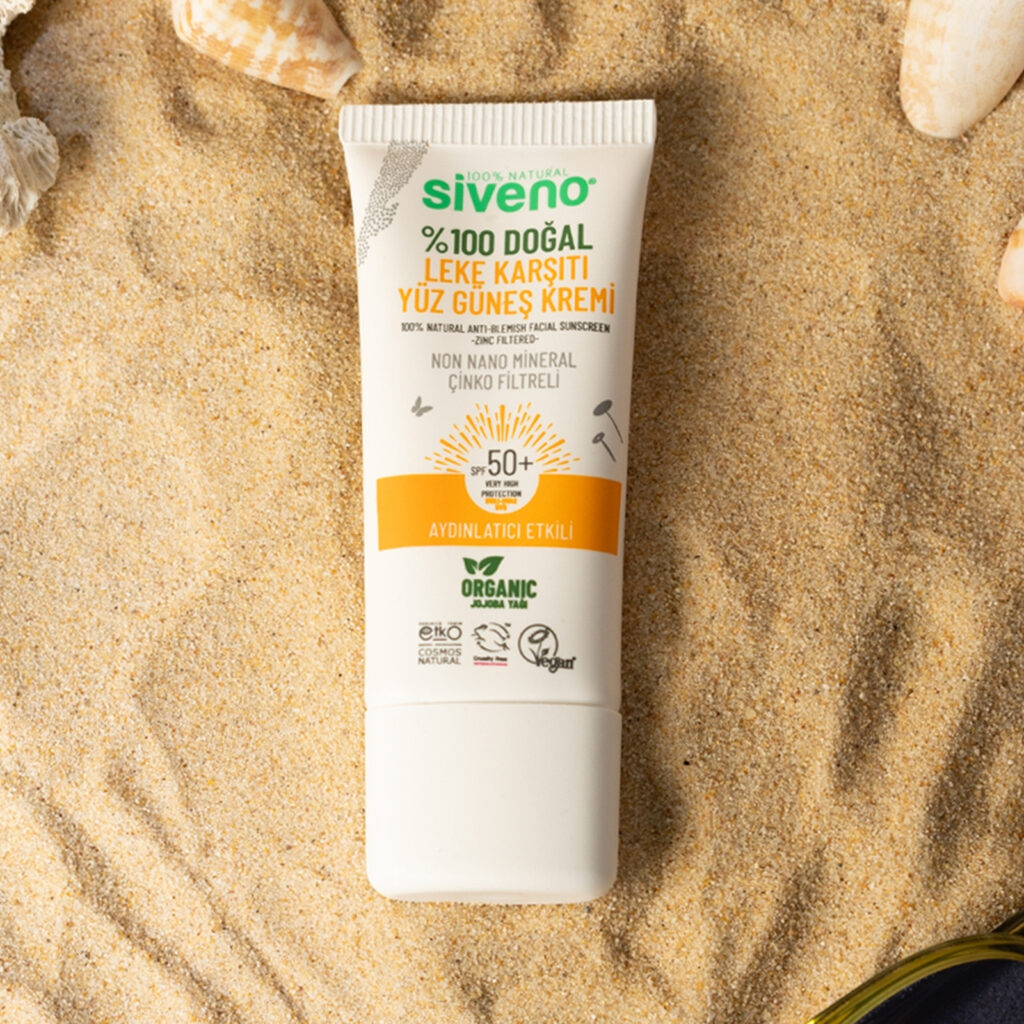 Siveno %100 doğal formülü ile hem güneş ışınlarına karşı ayna etki sağlayan yansıtıcı ve doğal mineral filtre içerir, hem de güneşten kaynaklı cilt lekelerinin oluşumunu önler. Düzenli kullanımda cildin bariyer fonksiyonlarının güçlenmesine, neme doymasına ve leke görünümünde azalmasını destekler.