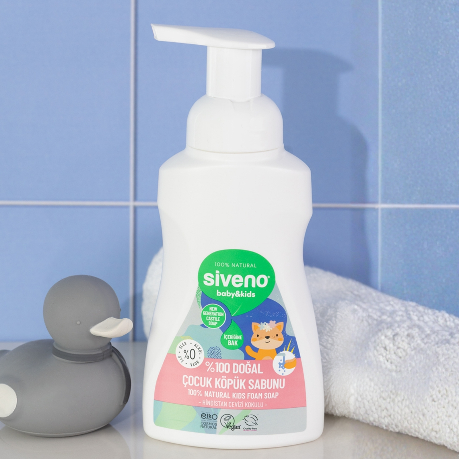Hassas bebek ve çocuk cildine özel olarak geliştirilmiş %100 doğal ve vegan formülü, Hindistan Cevizi Yağı ve Zeytinyağının zengin E vitamini içeriği sayesinde cildin doğal yapısını koruyarak temizler. Köpük formu sayesinde kolayca uygulanır ve durulanır.